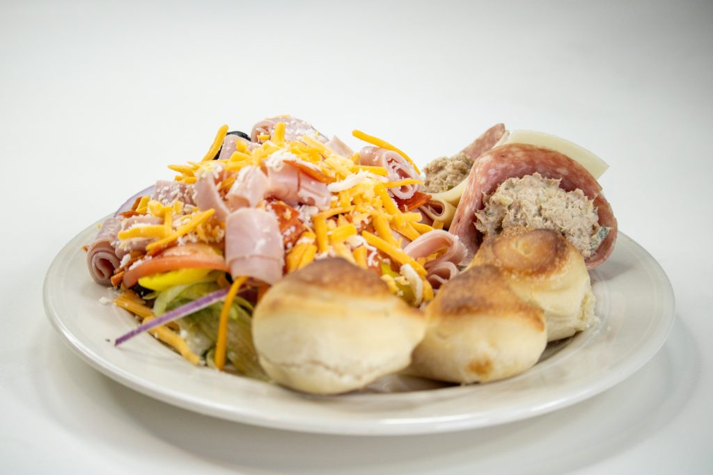 Includes lettuce, tomatoes, onions, mild peppers, black olives, Italian dressing or mayo